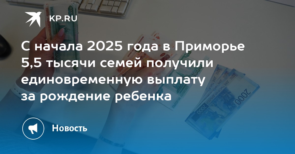 В Приморье при рождении ребенка семьи имеют право получить единовременную выплату на сумму 32 339, 05 рублей. Как сообщили в пресс-службе правительства региона, с начала 2025 года Социальный фонд России по краю назначил это пособие 5 563 семьям.